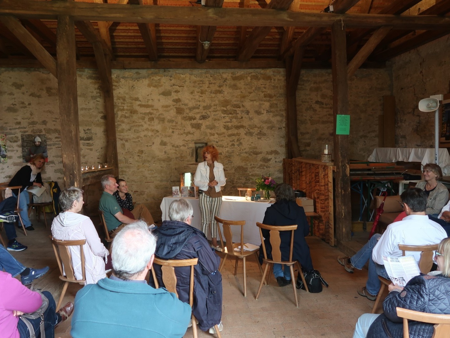Ein Highlight erlebten die knapp 50 Gäste eines kulturellen Abends am 24. Juni 2021 in der Scheune der Grumbachburg in Burggrumbach. Nach „einer sehr langen Corona-Pause“ hatten sich sowohl die Krimiautorin Alex S. Judge als auch die Katholische Öffentliche Bücherei Unterpleichfeld als Veranstalter auf die Autorenlesung „von Angesicht zu Angesicht“ gefreut und den Abend genossen.