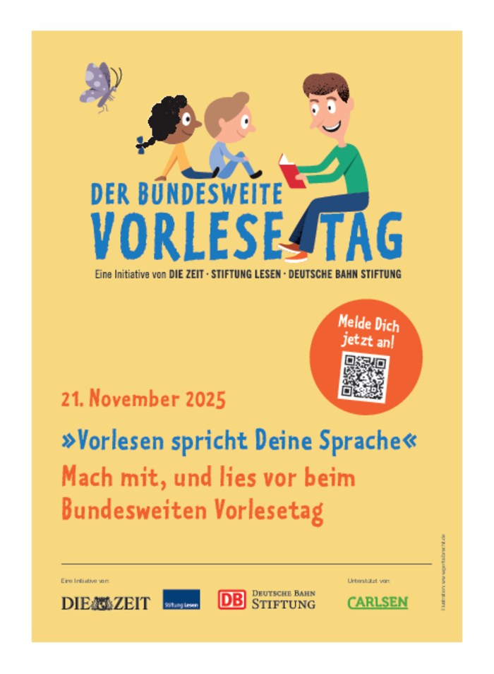 Am 21. November 2025 findet der 22. Bundesweite Vorlesetag unter dem Motto "Vorlesen spricht Deine Sprache".