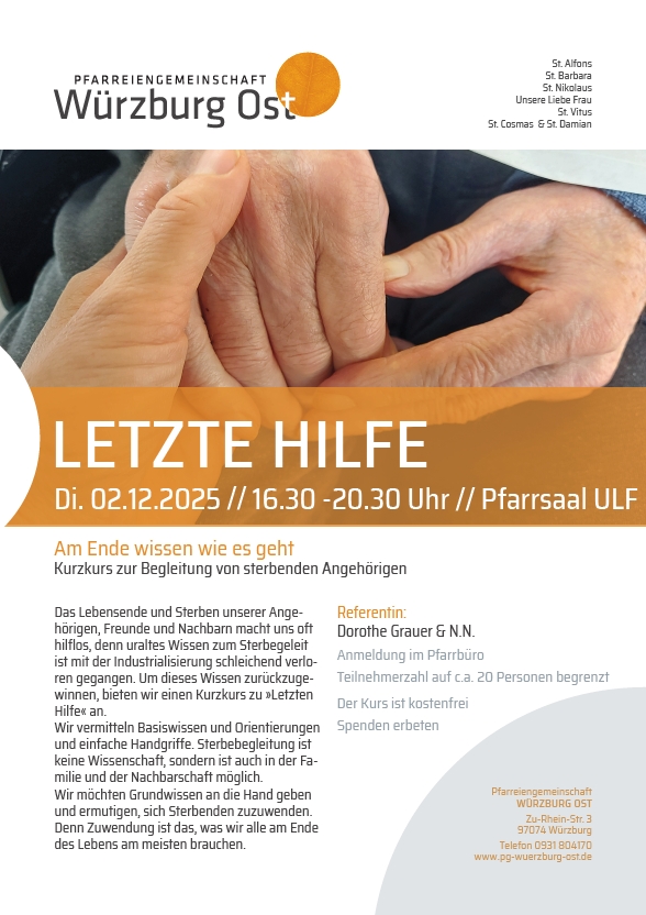 Bitte melden Sie sich im Pfarrbüro ULF (Zu-Rhein-Str. 3 97074 Würzburg) an.