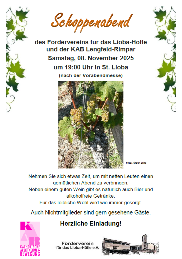 Nehmen Sie sich etwas Zeit, um mit netten Leuten einen gemütlichen Abend zu verbringen. Neben gutem Wein bieten wir natürlich auch Bier und alkoholfreie Getränke an. Für das leibliche Wohl wird wie immer bestens gesorgt.